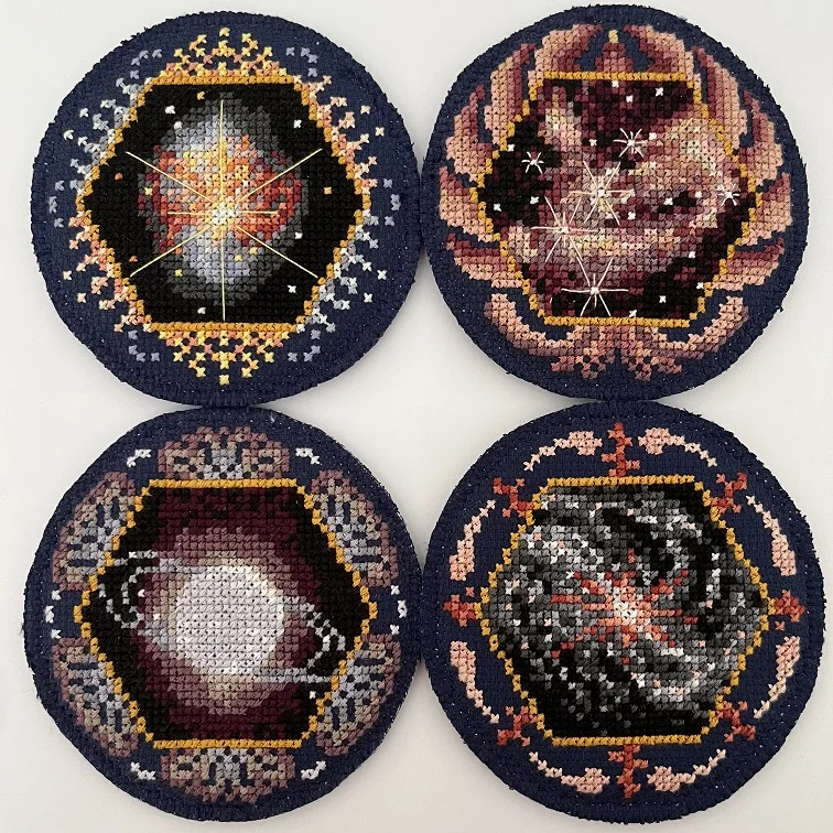 This series is based on the Wonders of the James Webb Space Telescope Stitchalong by Climbing Goat Designs. When I saw it, I instantly knew I wanted to make it, but I didn't like big projects. That's why I made each picture into a coaster.