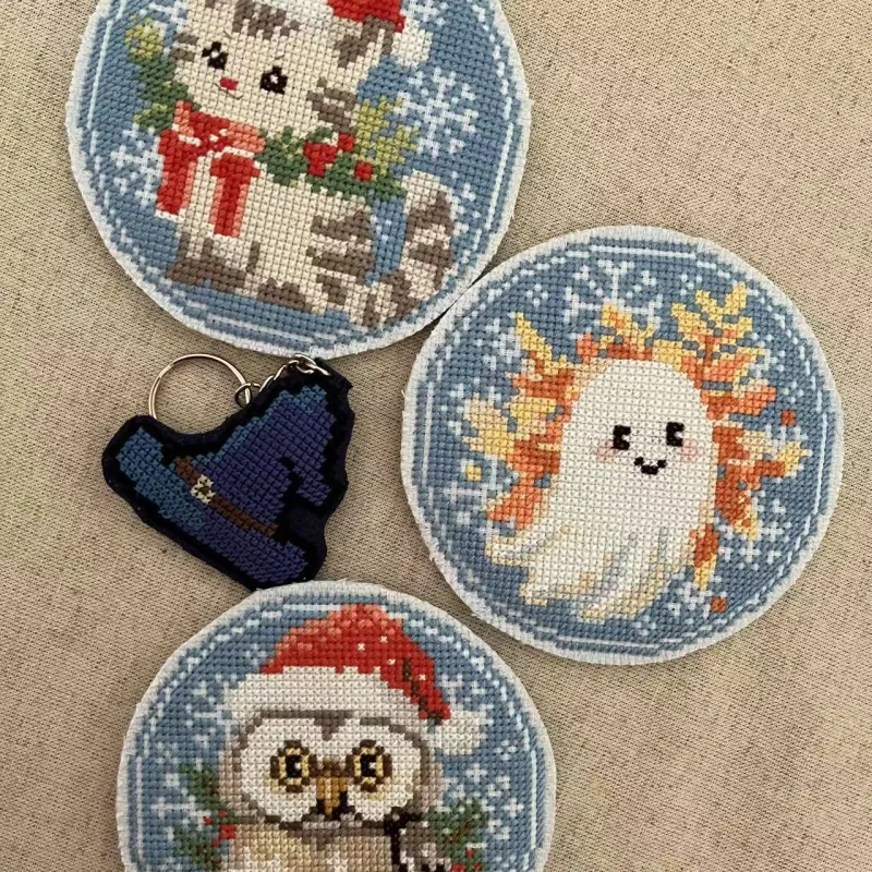 - Gifts for 2024 Christmas gift exchange: cup pads and a Runescape keychain (Cat pattern from Etsy, owl pattern from Etsy, ghost pattern from Etsy, free snowflake patterns)